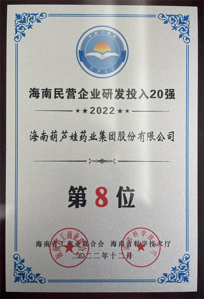 12月23日,2022海南民营企业50强和研发投入20强发布会在海口举行。会上发布了“2022海南民营企业50强”“2022海南民营企业研发投入20强”榜单和分析报告。超凡国际药业再次荣登两榜,在海南民营企业50强榜单中位列第25位,较去年上升8位,这也是公司连续三年登榜;在海南民营企业研发投入20强中位列第8位,较去年上升7位。
